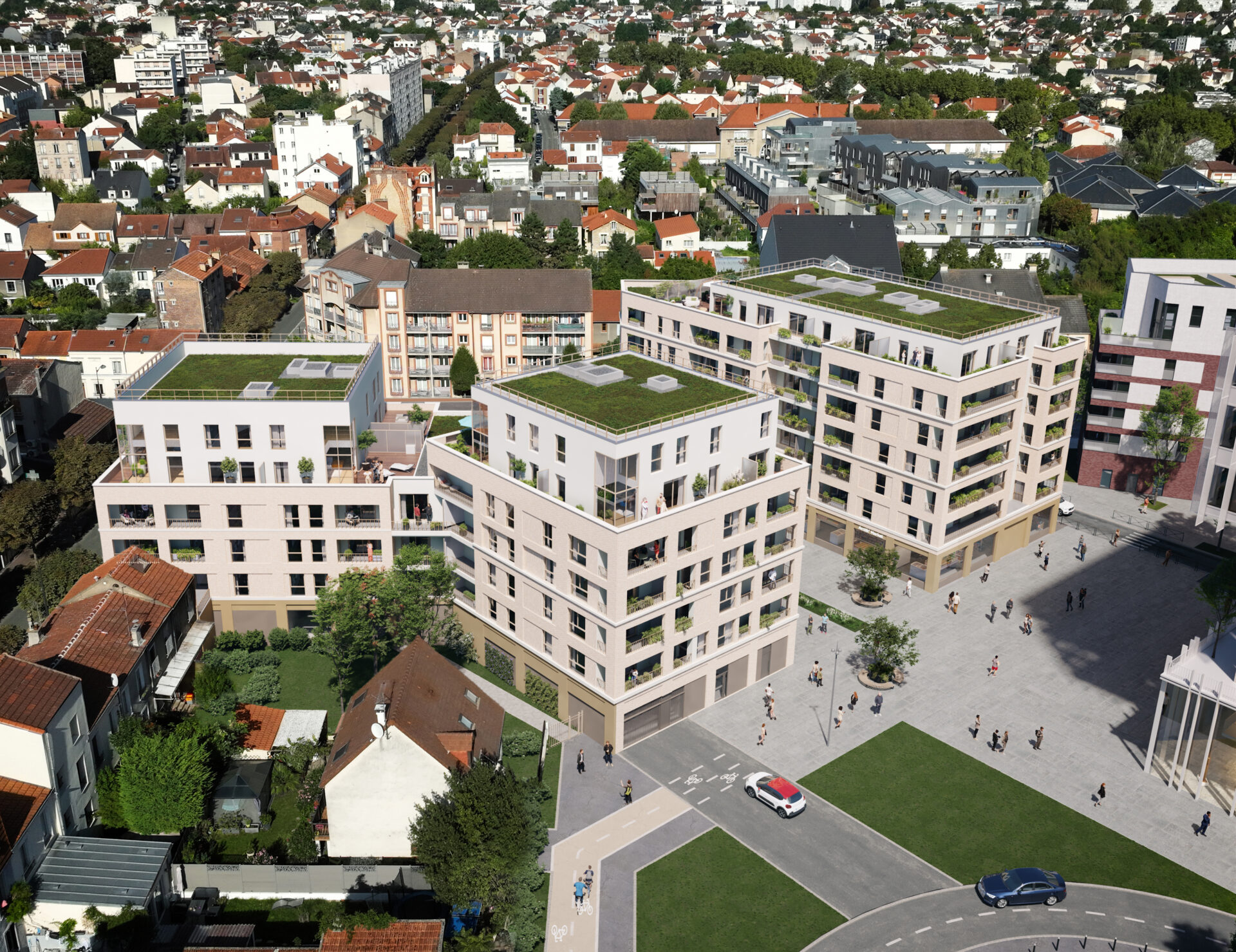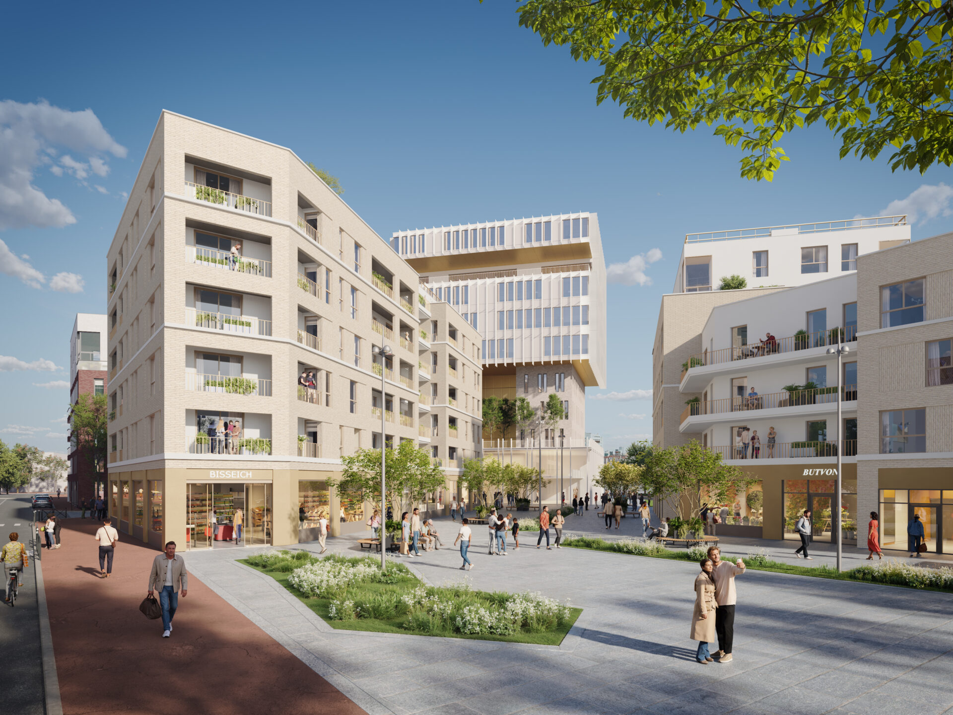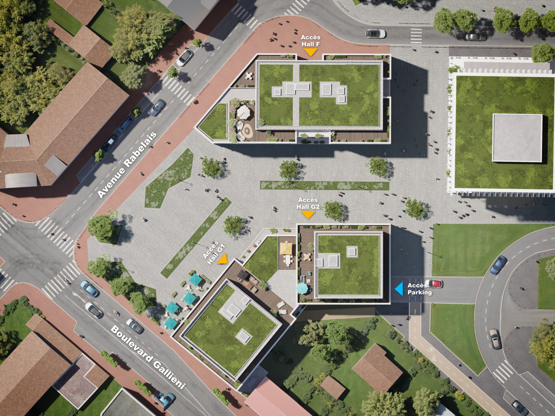 Ancrés dans un quartier en renouvellement, les accès s’organisent naturellement autour des nouveaux lieux de vie : le parvis de la crèche et la future place publique.