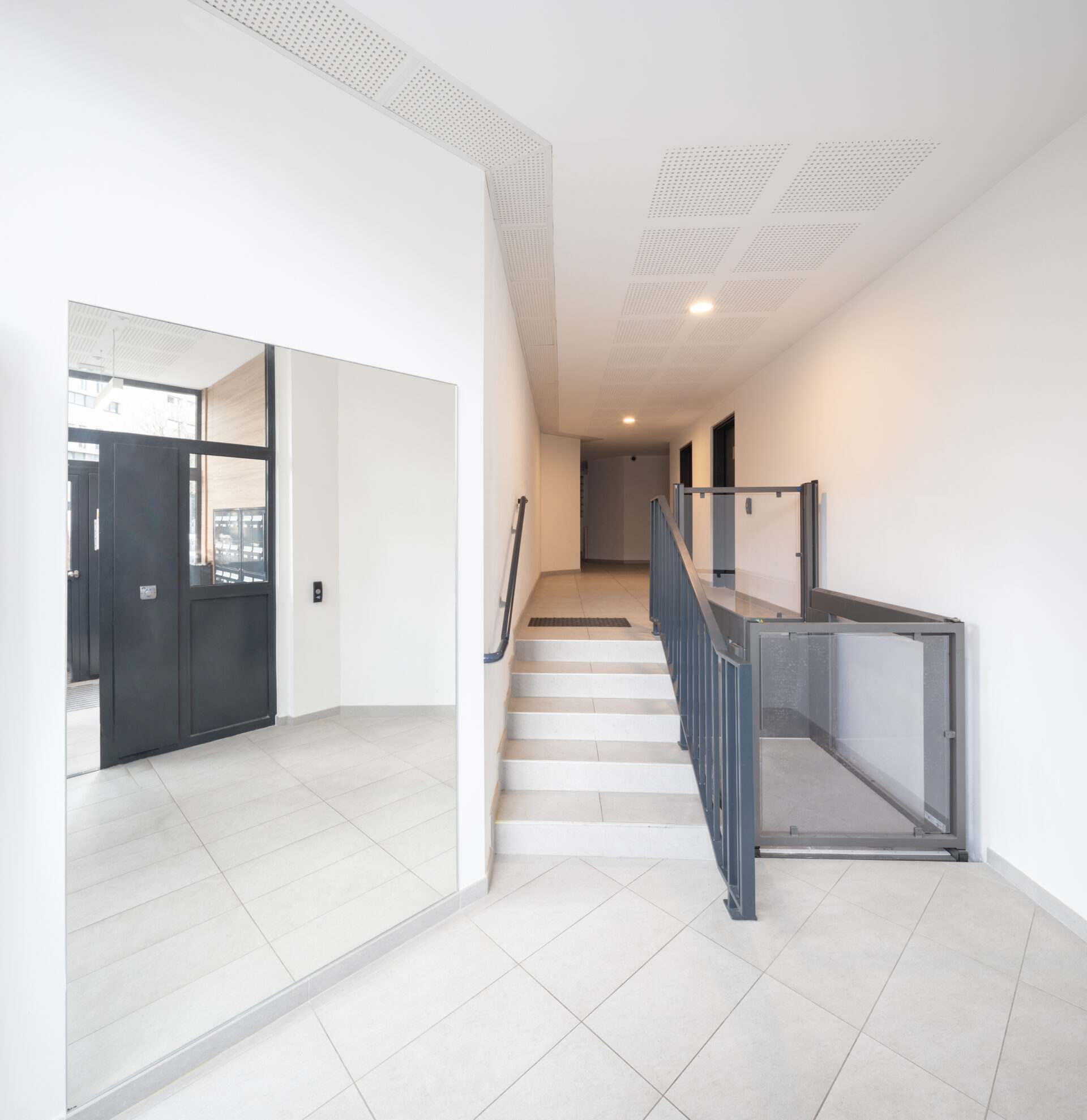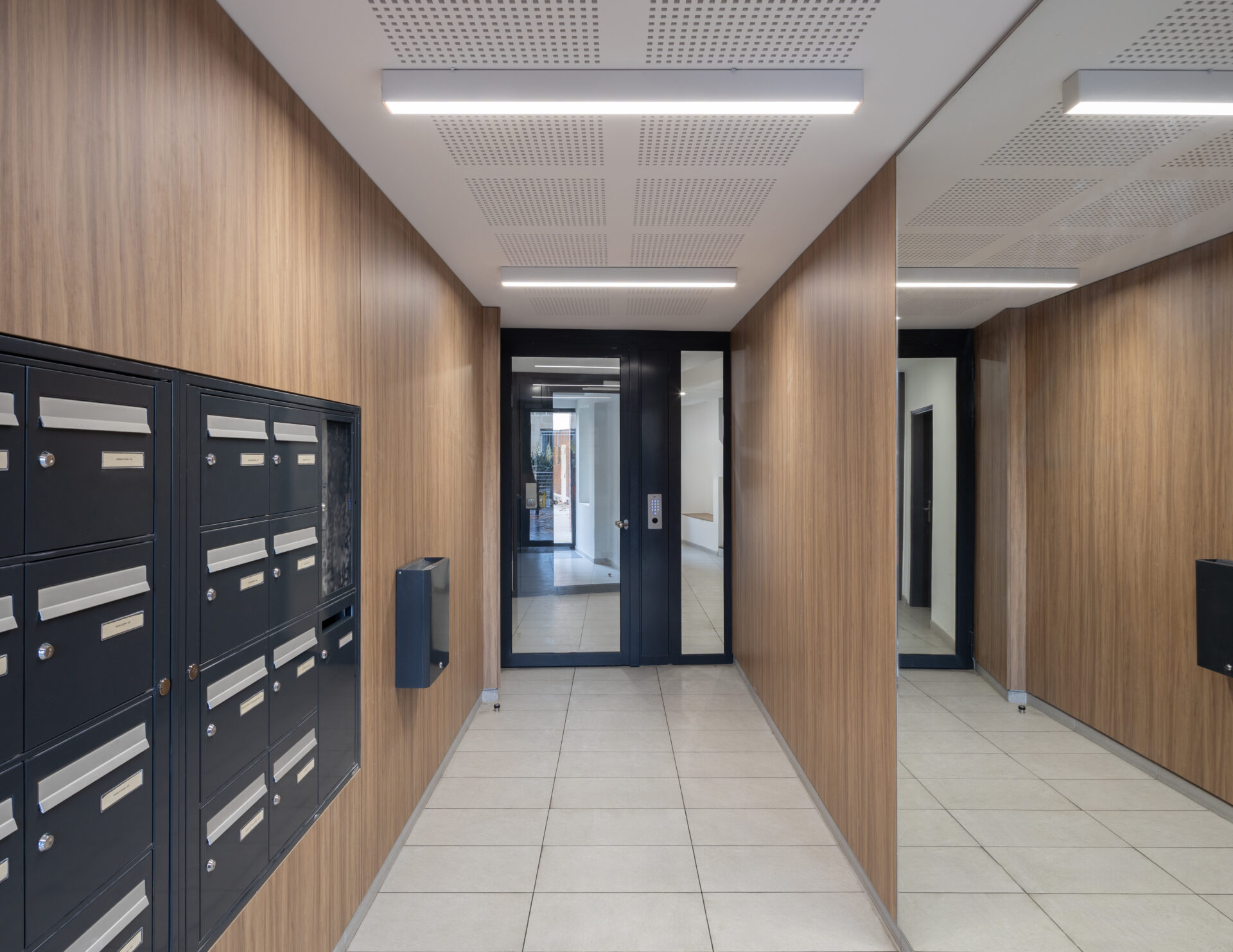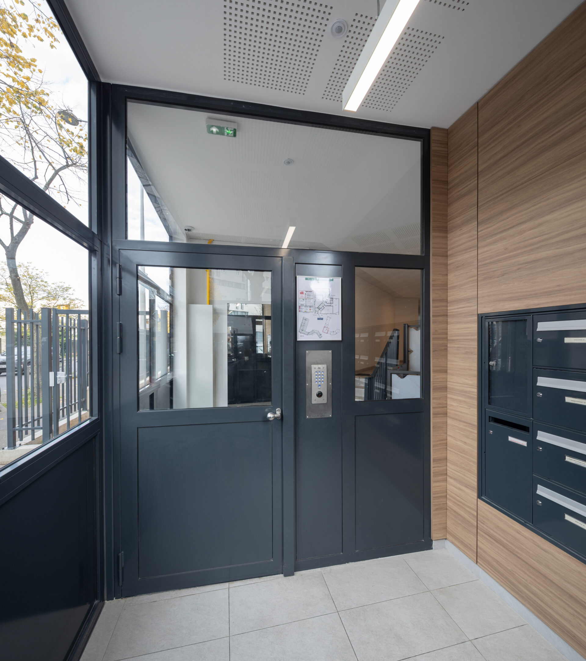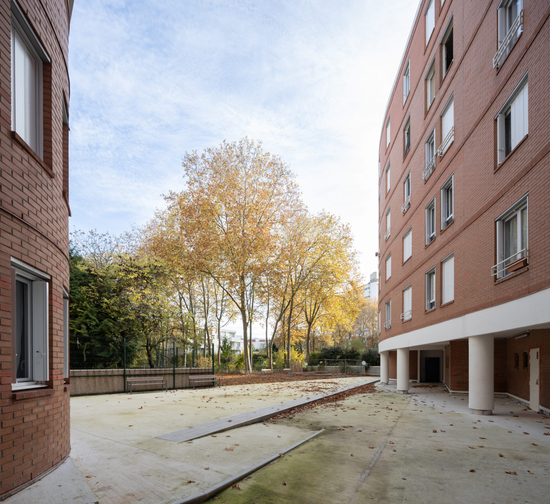 Notre parti architectural redéfinit l’ensemble des volumes de la résidence dans la hauteur du rez-de-chaussée. Ceci afin de réduire au maximum les facteurs d’insécurité, de requalifier les façades des bâtiments tout en respectant l’écriture architectural existante, d’agrandir les halls et réaménager les espaces communs à rez-de-chaussée, de rendre lisible l’adressage sur rue, de recréer des espaces paysagers communs dédiés aux locataires, de permettre aux résidents de se réapproprier leur espace de vie.